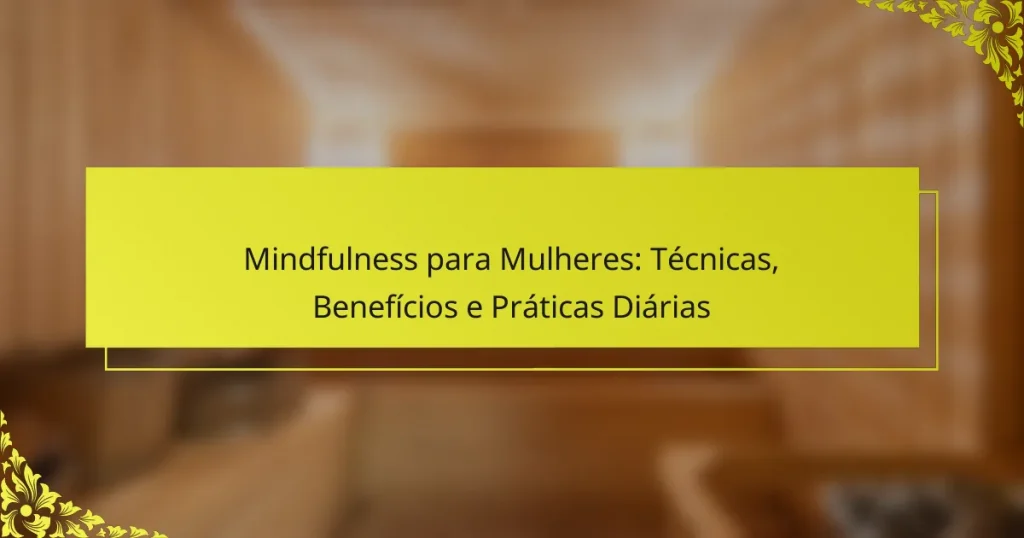 As técnicas de atenção plena para mulheres focam em melhorar a autoconsciência e o bem-estar emocional. As principais técnicas incluem meditação, respiração consciente, varredura corporal e escrita de gratidão. Cada técnica promove presença, reduz o estresse e incentiva uma mentalidade positiva. A prática regular pode levar a uma melhor clareza mental e resiliência emocional.